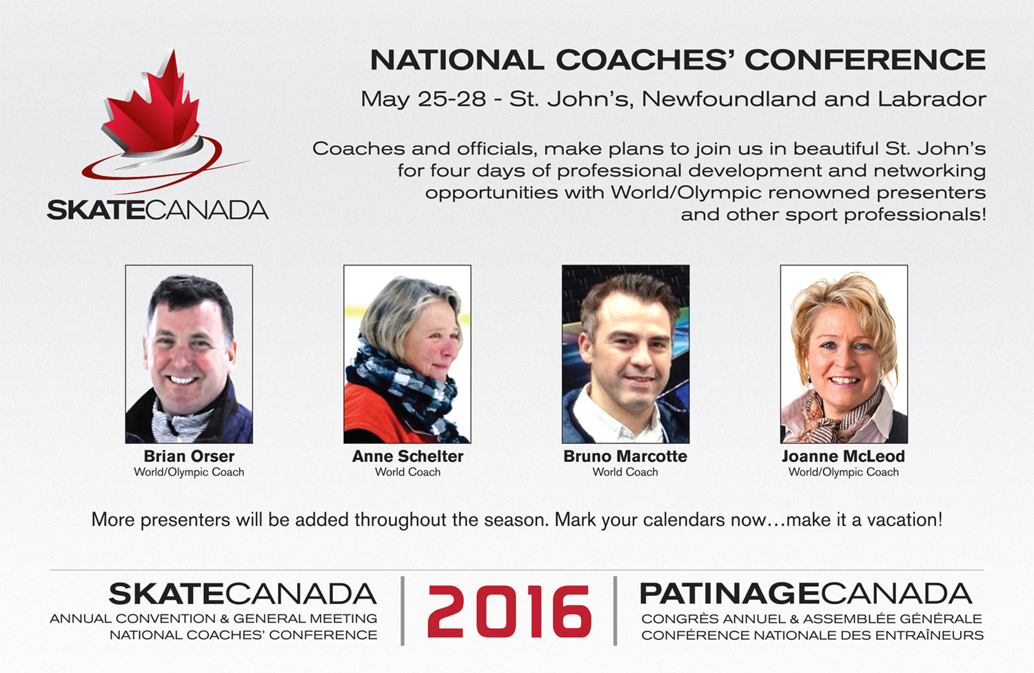Skate Canada2015-05-21 00:00:002020-04-24 15:31:49Skate Canada 2016 Annual Convention and General Meeting and National Coaches’ Conference to be held in St. John’s